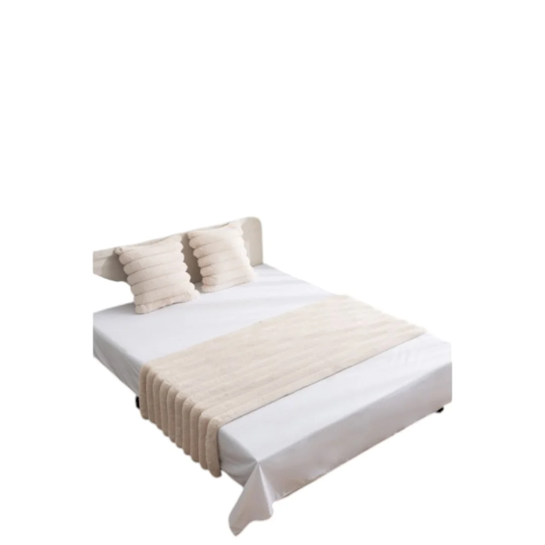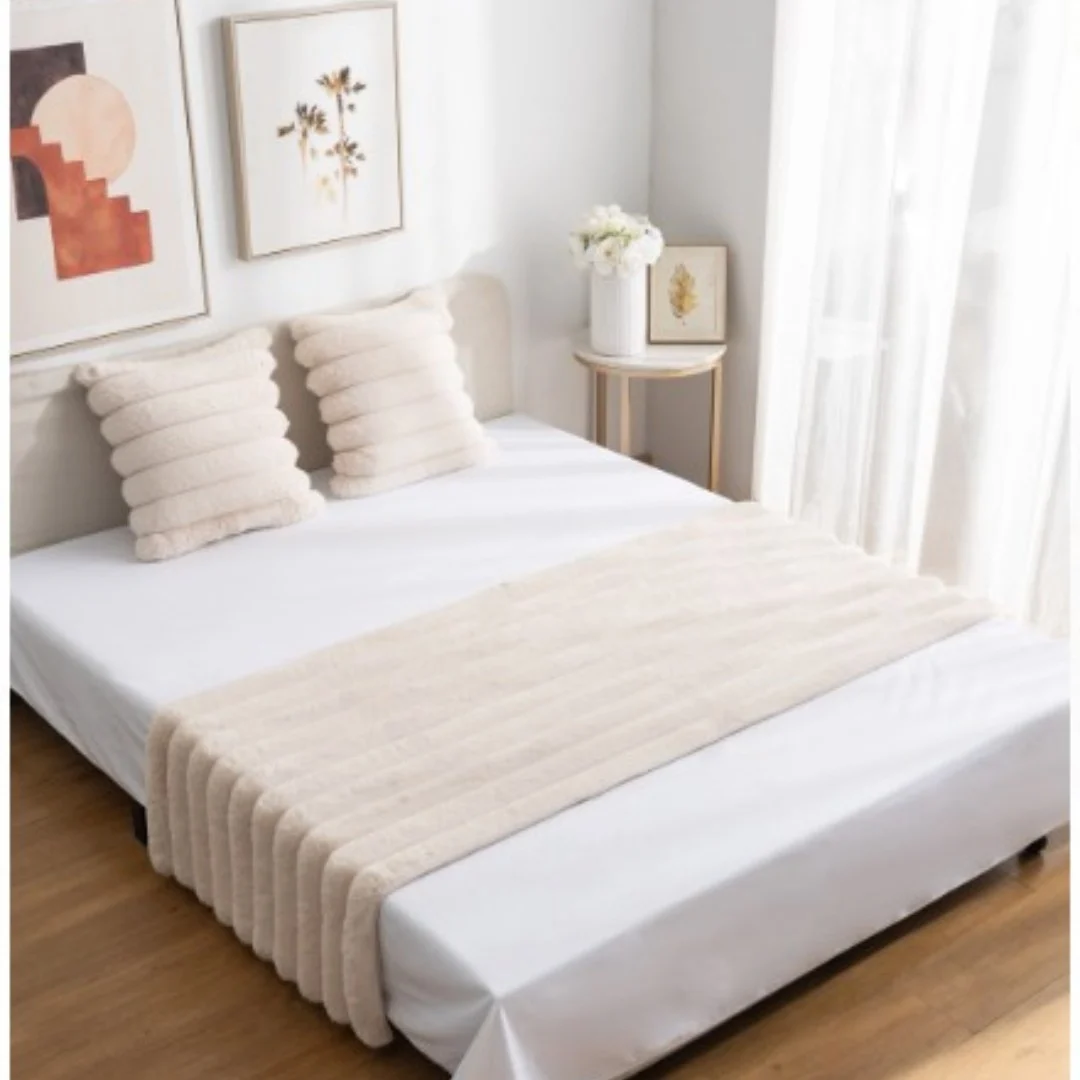 PIECERA PELUDAS + 2 FUNDAS DISEÑO LINEAL COLOR BEIGE