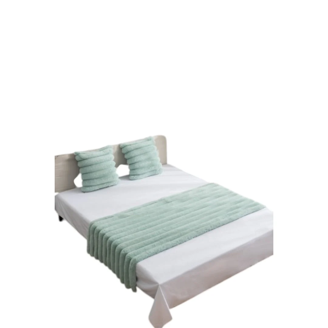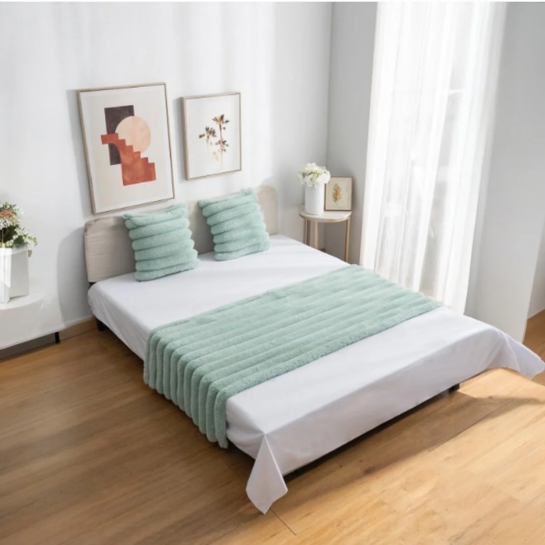 PIECERA PELUDAS + 2 FUNDAS DISEÑO LINEAL COLOR VERDE