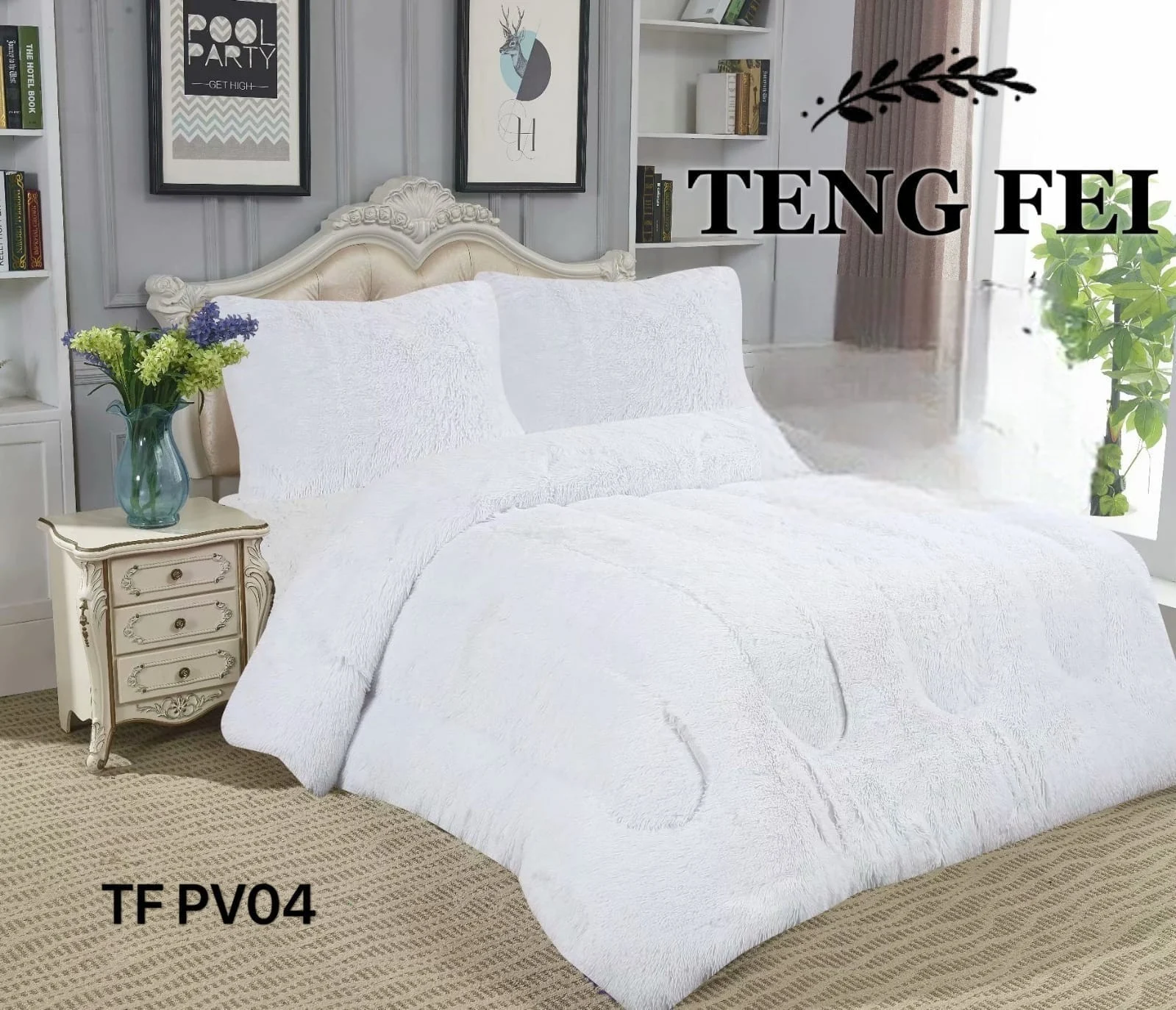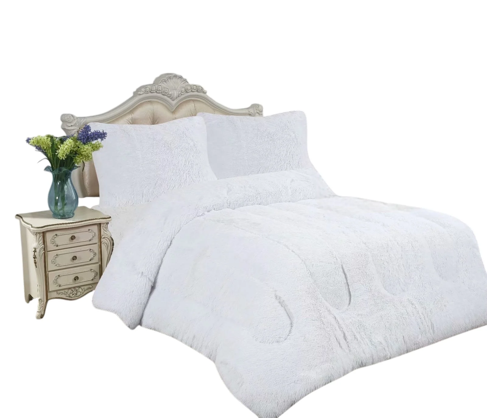 Plumon de invierno Peludos con chiporro 2 Plazas color blanco