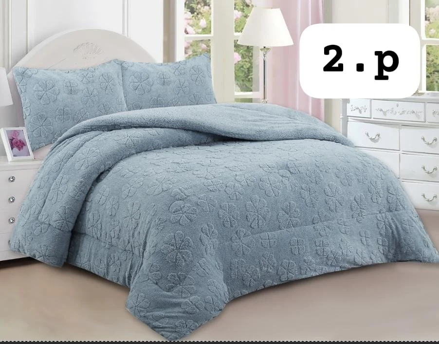 Plumon de invierno texturizado diseno trebol con chiporro 2 Plazas color gris