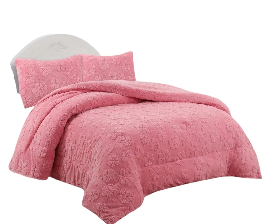 Plumon de invierno texturizado diseno trebol con chiporro King color rosa