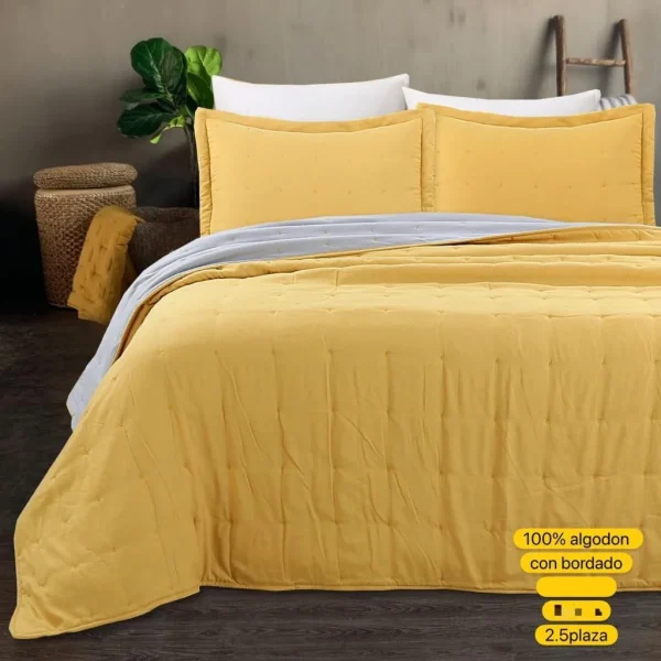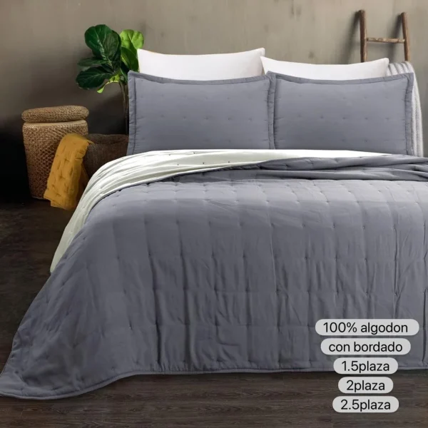 Cubrecama Semi Acolchado de Algodón 2 Plazas con Fundas