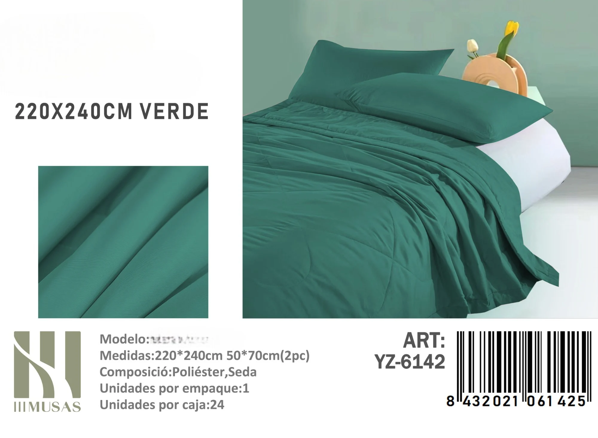 Plumon Unicolor 2 plazas medidas 220x240cm YZ-6142 verde