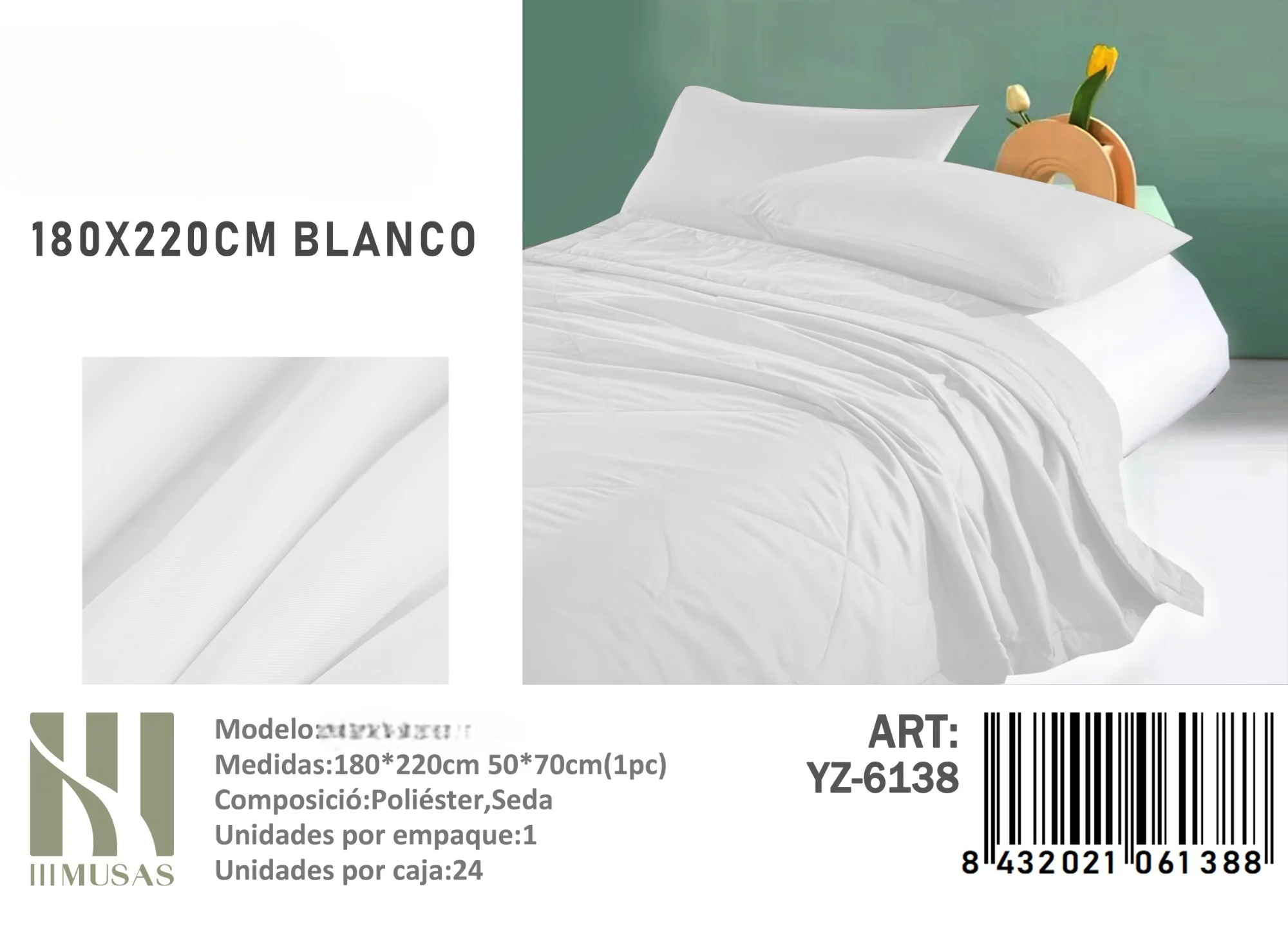 Plumon Unicolor plaza y media medidas 180x220cm YZ-6138 blanco