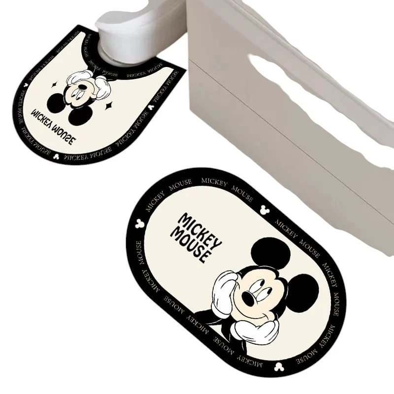 Ambos tapetes están decorados con un diseño inspirado en personajes resaltando tonos neutros con detalles en negro y blanco. mientras que los materiales son fáciles de limpiar, adecuados para espacios húmedos como el baño.
