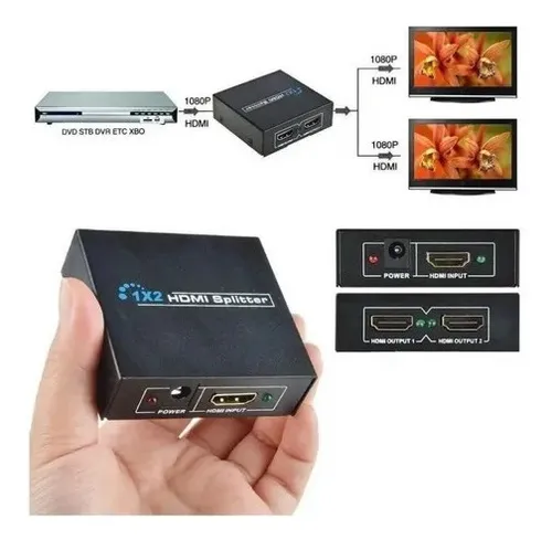 Divisor HDMI 1 en 2 salidas: 1 divisor HDMI dividido de señal de audio y vídeo duplicado de una sola fuente HDMI a 2 pantallas HDMI diferentes simultáneamente sin retraso, flash o caída en resolución, ya que viene con un cargador para darle la potencia suficiente para transmitir la imagen a la mejor calidad. Características – Vídeo 3D – Full HD 1080P – 1 Entrada HDMI A 2Salidas – Para Clonar pantallas – Viene Con Cargador