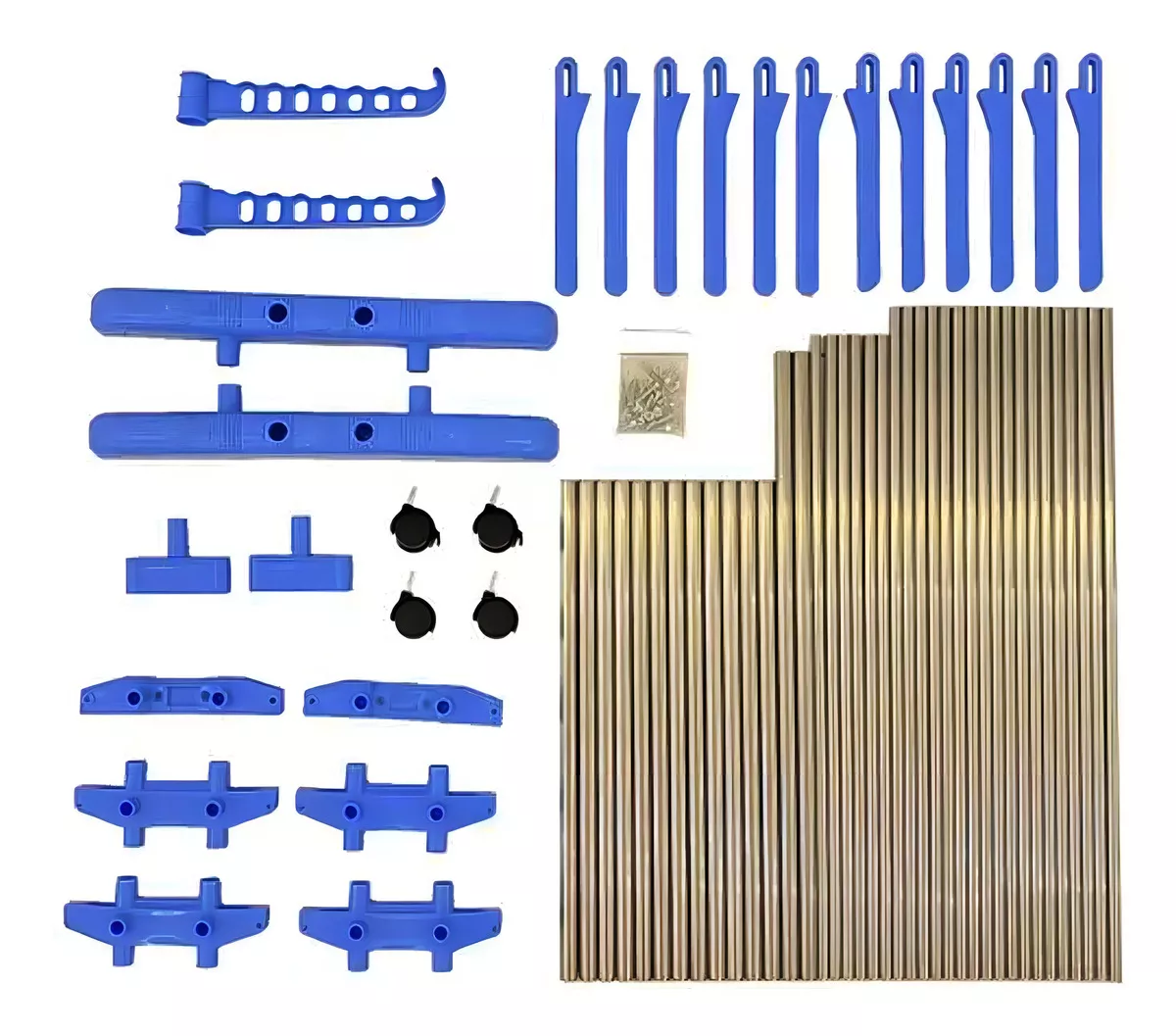 Fabricado con materiales de calidad, como plástico y acero inoxidable, ofrece durabilidad y resistencia. Fácil de montar, contiene 66 piezas de montaje y 20 tornillos, y el manual de instrucciones se adjunta al lateral del paquete.