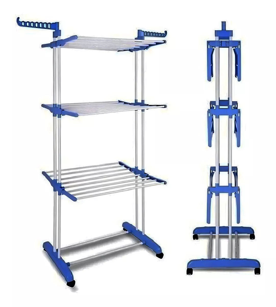 Tendedero Vertical De Metal De 3 Niveles 170 x 126 x 64 cm Color Azul